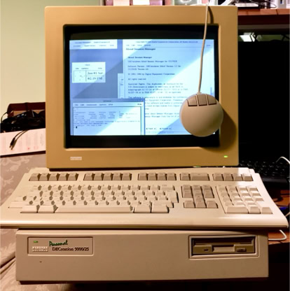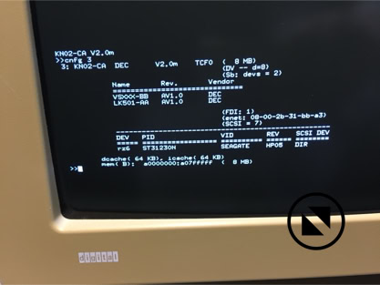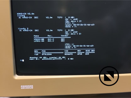 La mia Digital Personal DECstation 5000/25 è equipaggiata con un processore R3000A, Model 25 appunto a 25 MHz, 8 MByte di RAM due hard disk ed un floppy disk da 3”1/2 da 2,88 MByte.