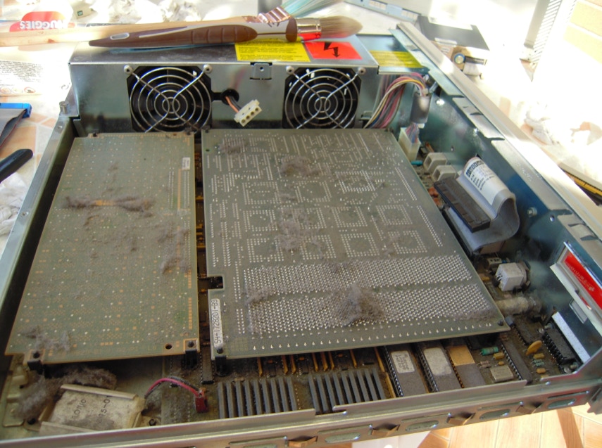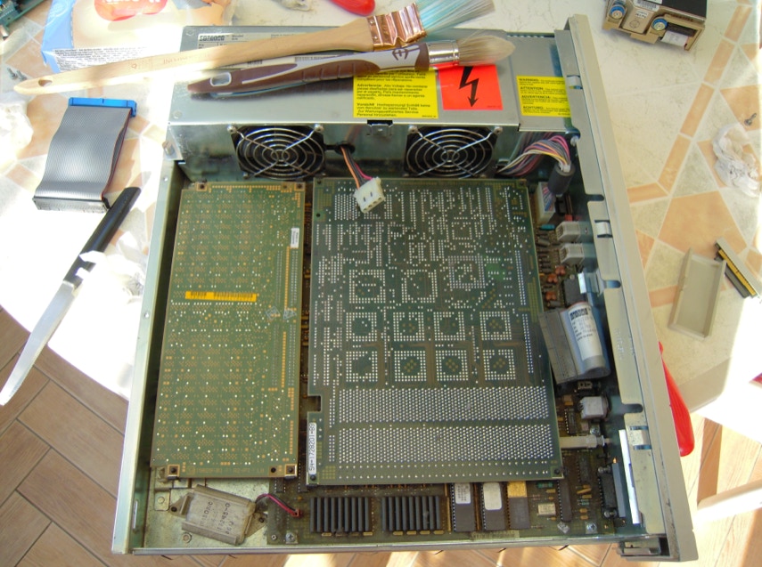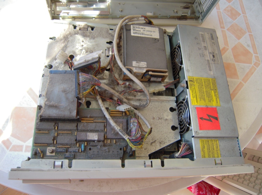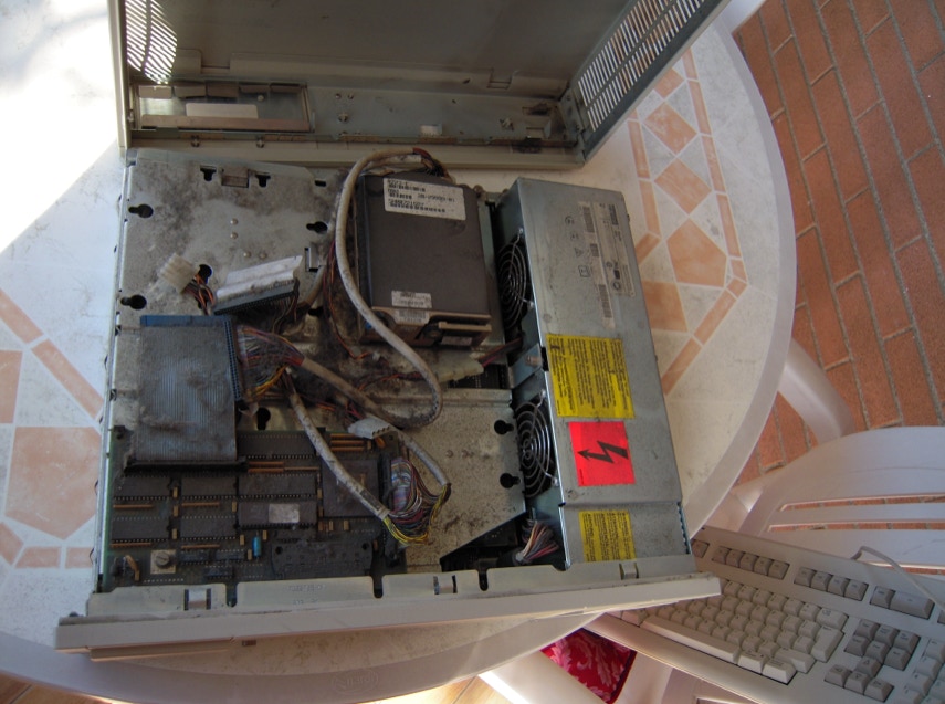 Sicuro di poterla aggiustare l’ho ordinata e nel giro di pochi giorni è arrivata. Dopo una pulita esterna alla scocca ed alla tastiera era arrivato il momento di aprire la workstation e vederla all’interno.