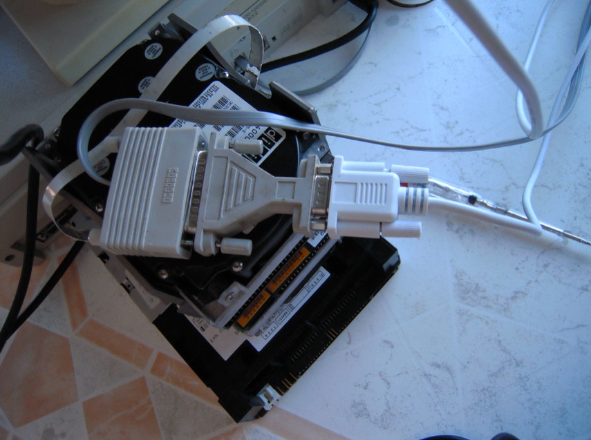 superioreverrà abilitata la visione monitor. La presa console è quella PRINTER di fianco ala porta monitor da 15 pin Maschio. Collego mediante prolunghe ed un cavo bianco F/F 9 pin “null modem” , la porta MODEM del mio terminale seriale WYSE con un adattatore 25 pin 9 pin. Nelle foto è presente la cablatura. Ed ecco all’accezione parte il POST.