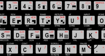 Dettaglio sul logo ZX81 e sulla tastiera del computer.